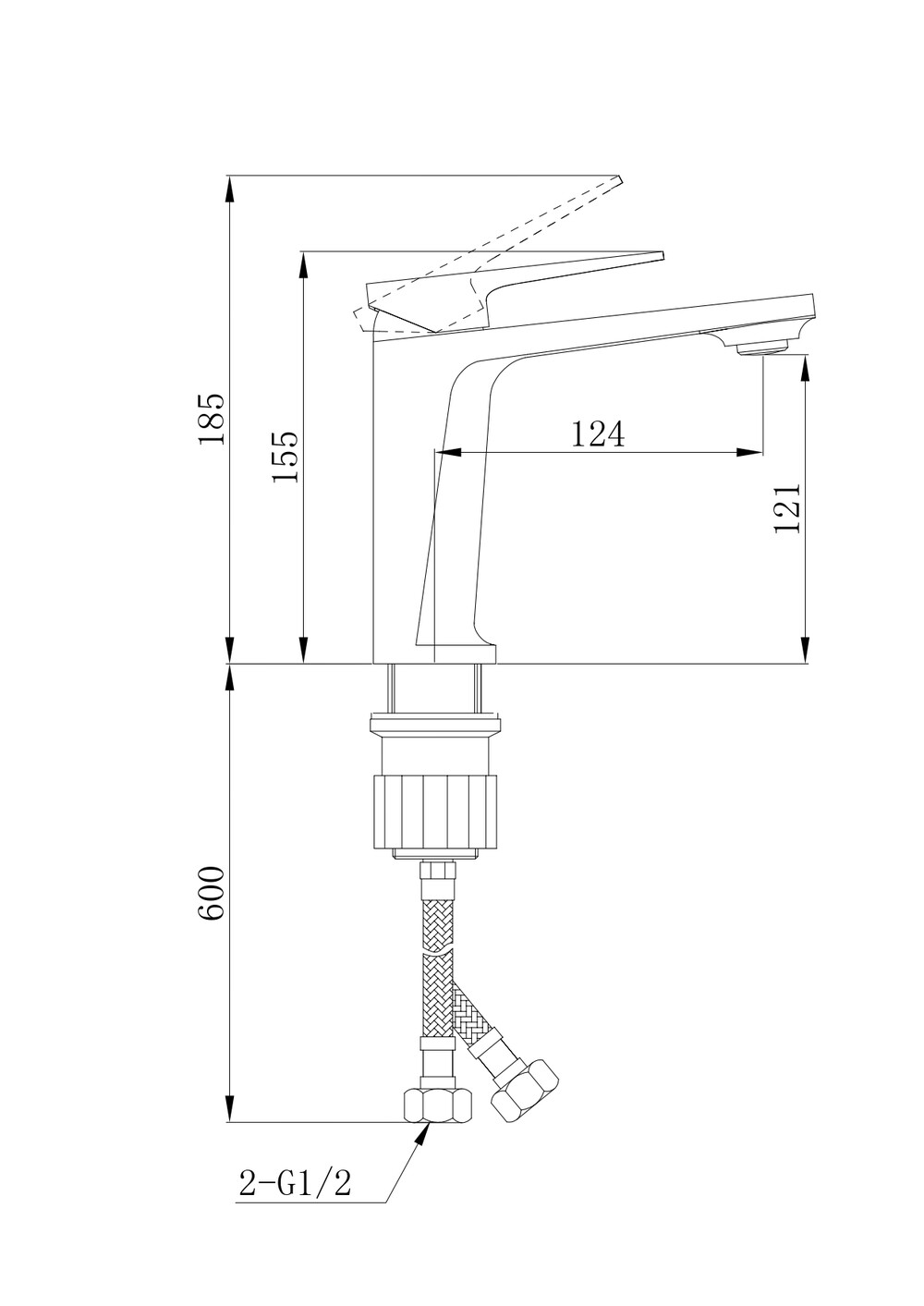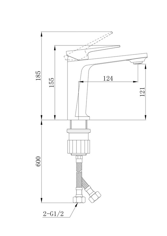 Смеситель для раковины Материал корпуса - латунь Ручка - цинк Гибкий шланг - 2шт 1/2, 50 см, нерж.сталь