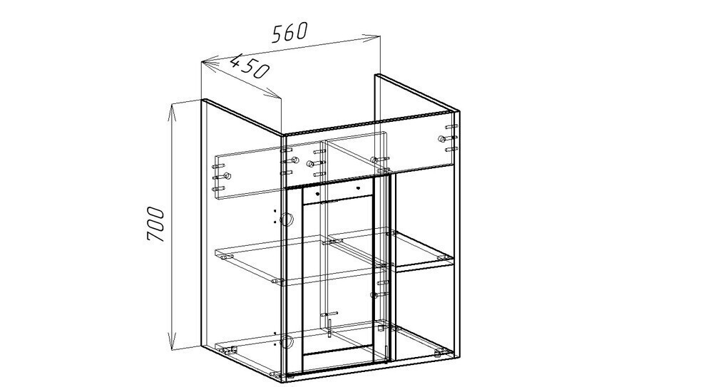 | Комплектация | 1 дверца. 2 полки, 1 ручка, 4 ножки |