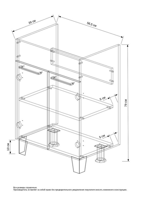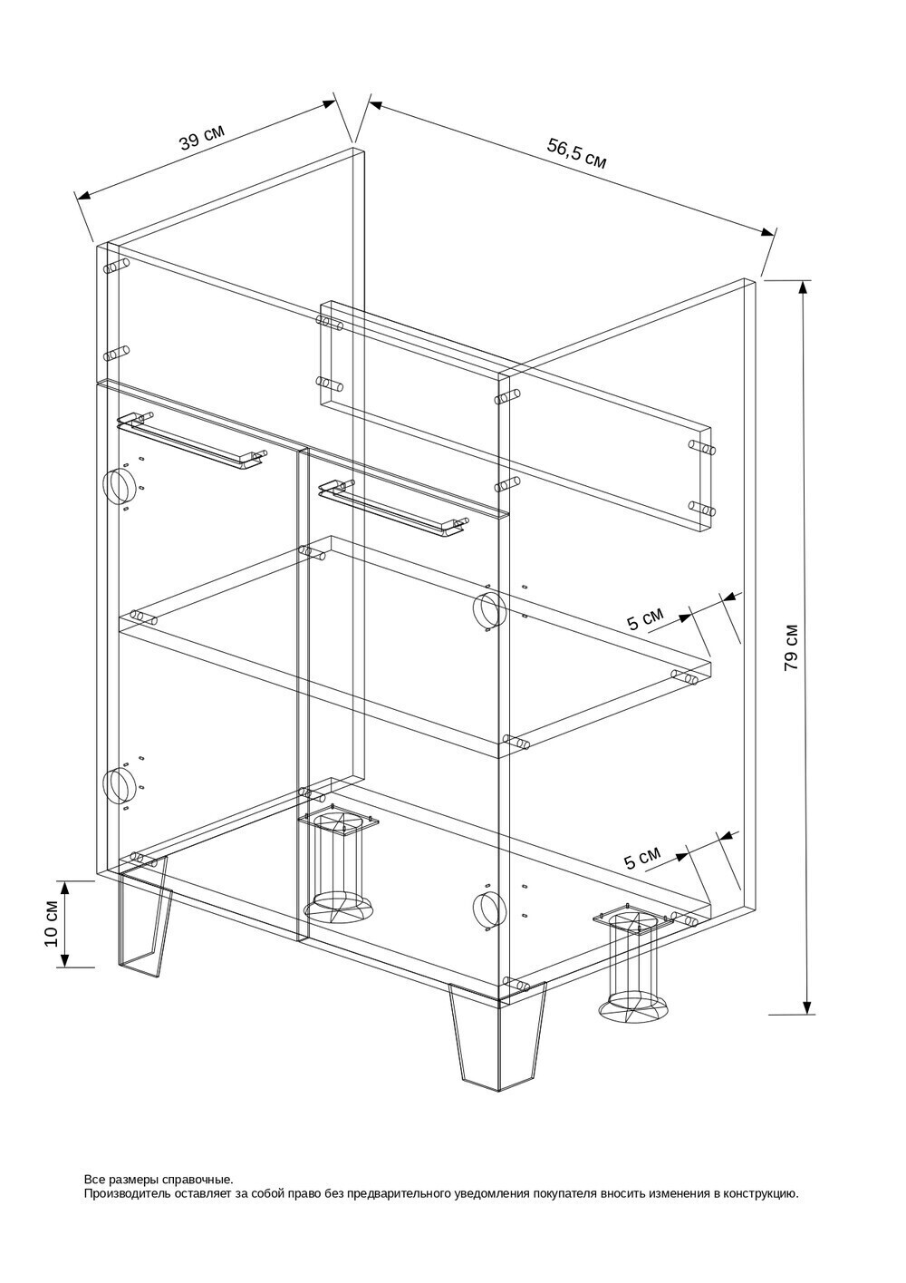| Комплектация | 2 дверцы, 1 полка, 2 ручки, 4 ножки |