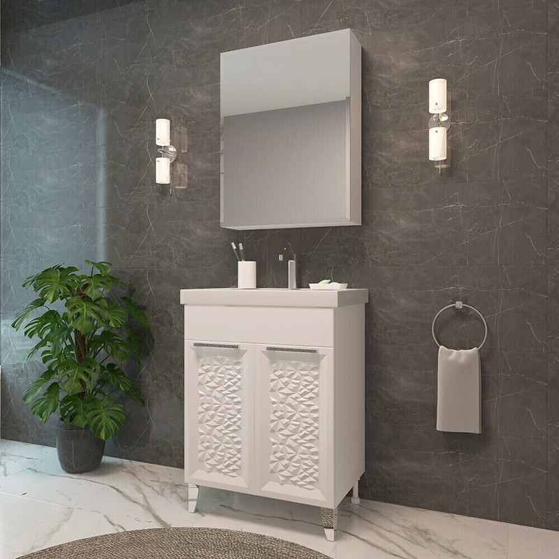Современный дизайн коллекции Uno демонстрирует аккуратный минимализм геометричных четких форм, где основная идея подчинена максимальной функциональности. Вместительная тумба и зеркальный шкаф создают дополнительное пространство, где будут надежно скрыты от влаги банные принадлежности, а все необходимое при умывании и принятии ванны теперь будет у вас под рукой.