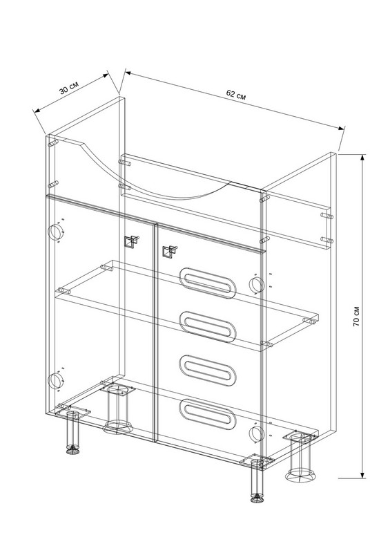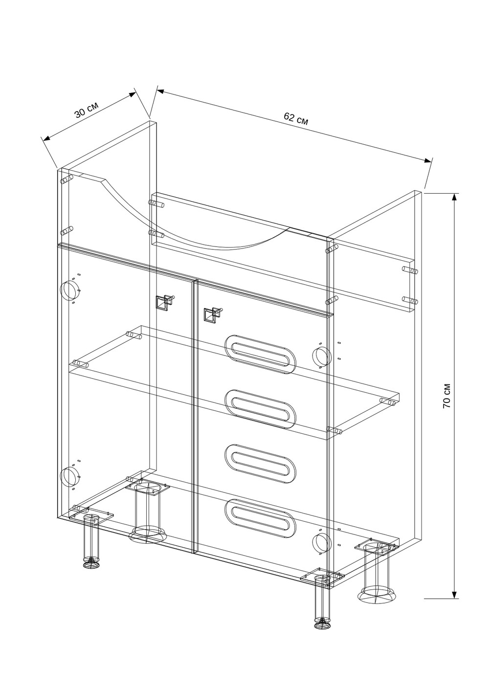 | Комплектация | 2 дверцы,1 полка, 2 ручки, 4 ножки |