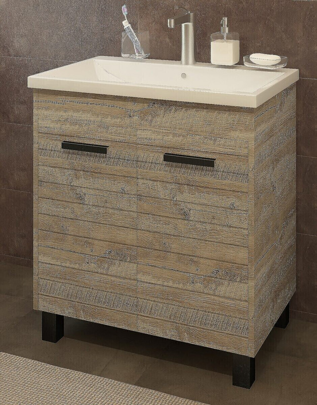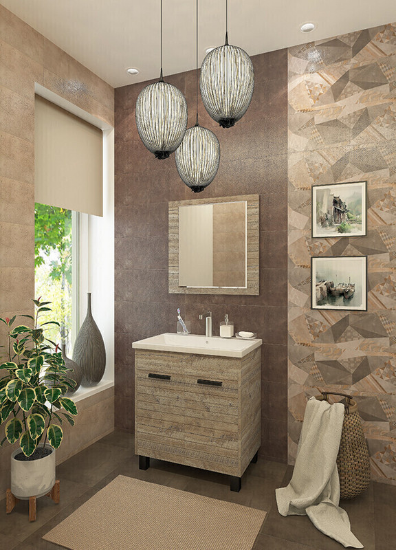 Смелая коллекция Daisy поможет компактно обустроить пространство небольшой ванной комнаты. Дизайнеры Grandfayans остановились на трендовом оттенке «гранж», который привнесет в интерьер ощущение тепла и уюта. Тумба комплектуется лаконичной раковиной, удачно дополненной фурнитурой черного цвета.