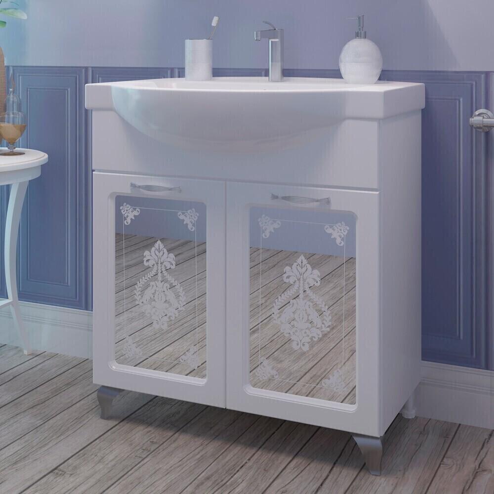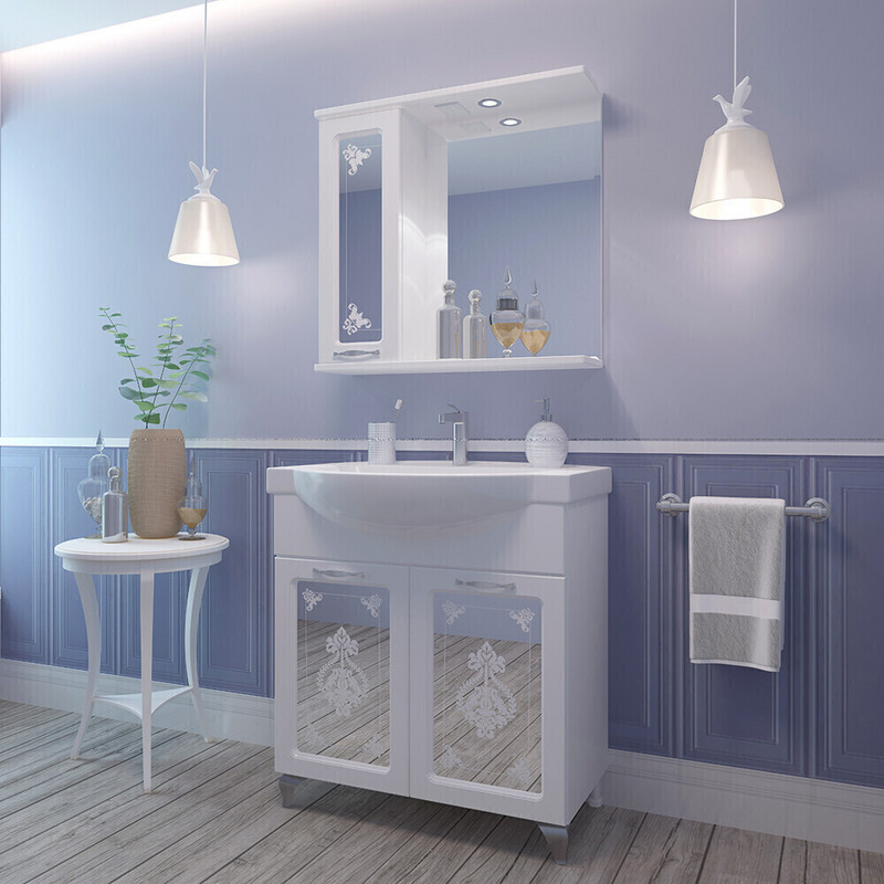 Классика – это то, что никогда не выходит из моды, а значит мебель в этом стиле всегда будет пользоваться спросом. Фасад коллекции Сapella декорирован зеркальными вставками с шелкографическим узором. Изящный орнамент гармонично перекликается с ручками комплекта. Модель изготовлена из влагостойкой МДФ. Качественная фурнитура обеспечит долгий срок службы. Дверцы закрываются плавно и бесшумно. Гарантия на мебель составляет 2 года, на раковину 10 лет.