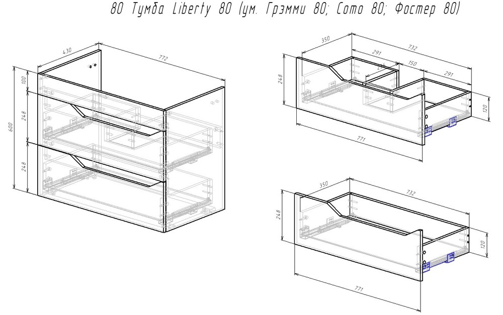 | Доводчики ящика | Да |