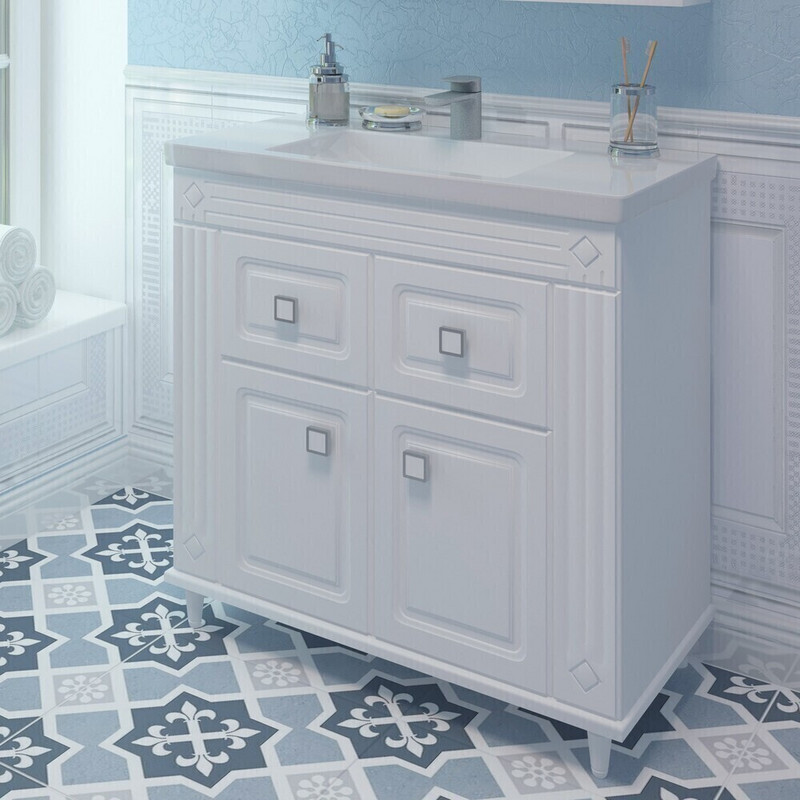Комплект Prado отличается геометричной фрезеровкой, аккуратными лаконичными ручками, которые очень удобны в использовании. Комплект выполнен в 80-м размере, что позволит разместить все ванные принадлежности.