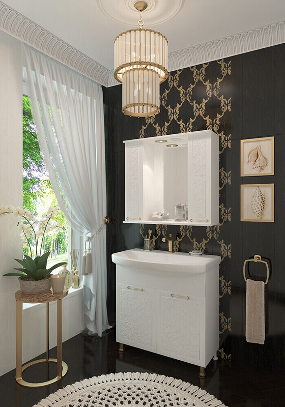 В коллекции Bohemia 85 внимание уделено каждой детали: золотое исполнение фурнитуры гармонирует с объемным узором фасада и с белым цветом самой мебели. Ванная комната с коллекцией Bohemia никогда не утратит своей привлекательности.
