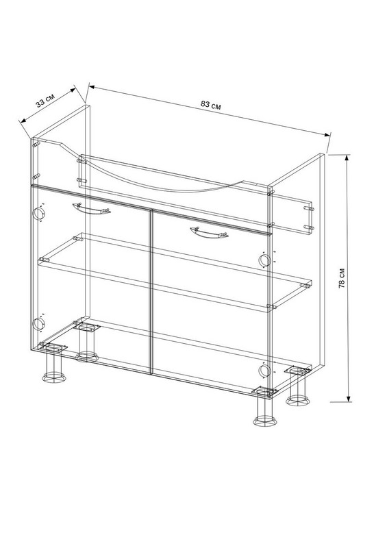 | Комплектация | 2 дверцы, 1 полка, 2 ручки, 4 ножки |