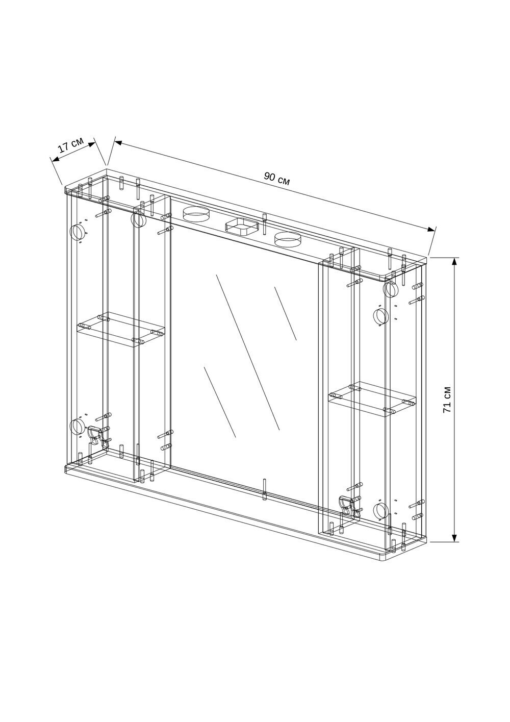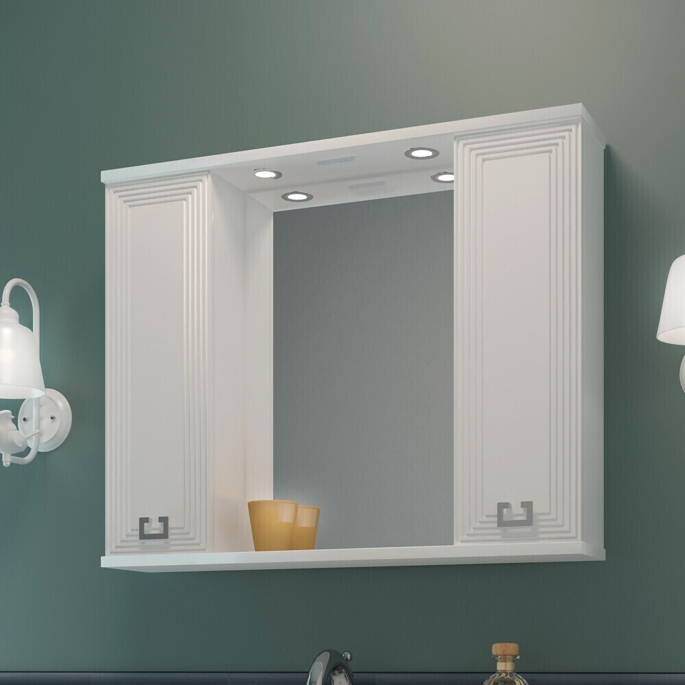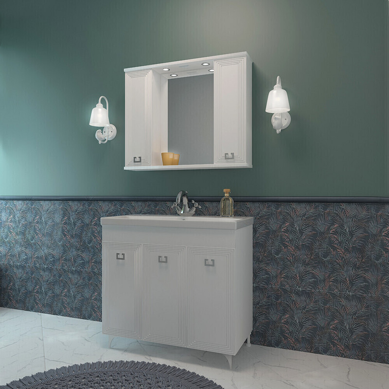 Белоснежный комплект Ravenna будет прекрасно смотреться как в классических, так и современных интерьерах. Зеркало с двумя шкафчиками и вместительная тумба с практичной раковиной создадут уютное пространство для проведения ежедневных процедур.