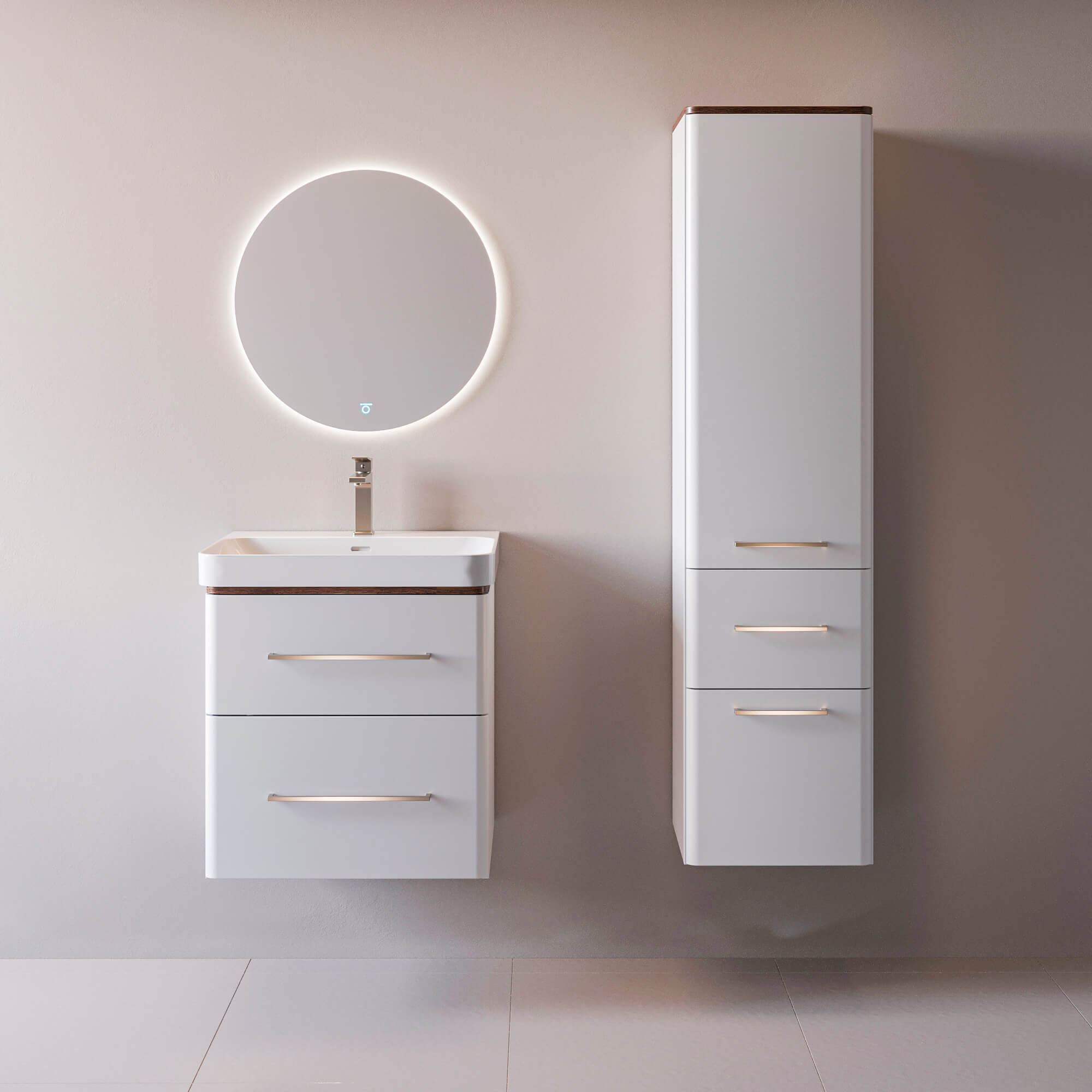 За внешней лёгкостью Перл скрывается серьёзная инженерия. Корпус и фасады выполнены из влагостойкого МДФ, что делает мебель невосприимчивой к перепадам влажности и гарантирует долгий срок службы в ванной комнате.