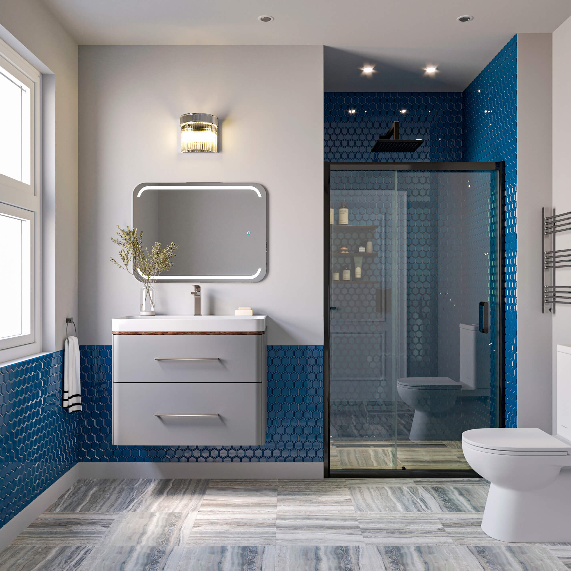 Подвесные тумбы шириной 60 или 80 см — основа для компактной или просторной планировки.