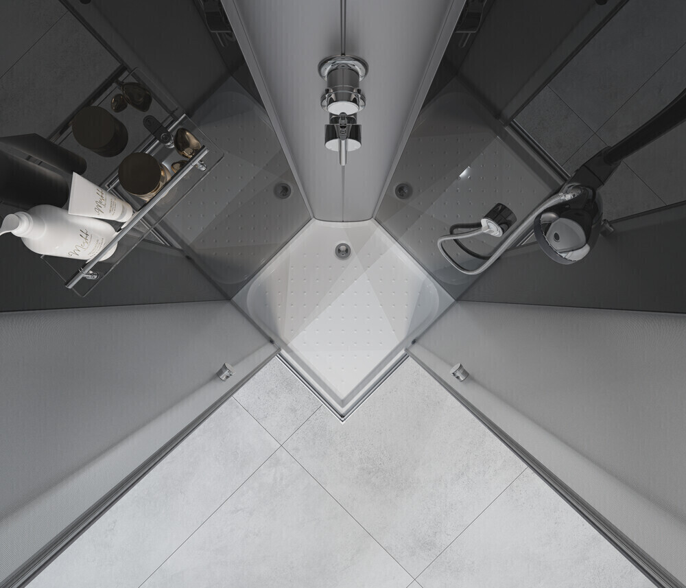 | Комплектация | Двойные верхние ролики, нижние нажимные ролики, алюминевый профиль, латунный смеситель, стеклянная полочка, душевая лейка с держателем, тропический душ, сифон |
