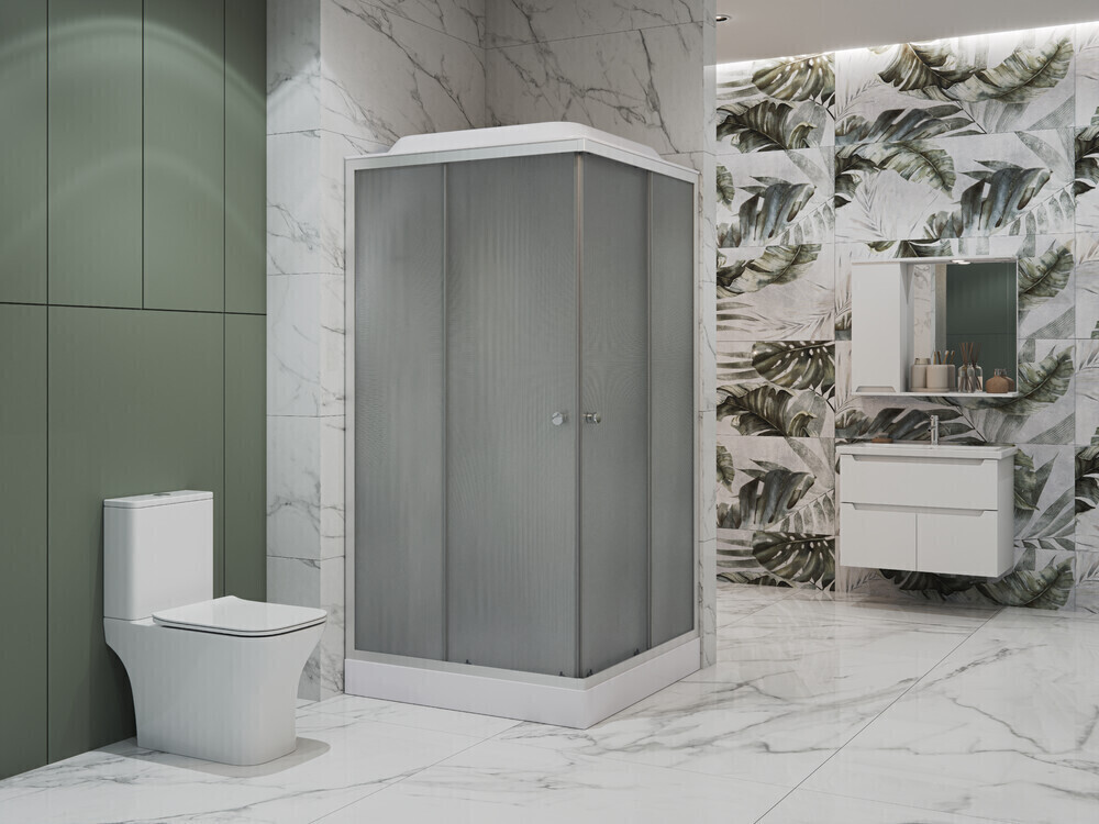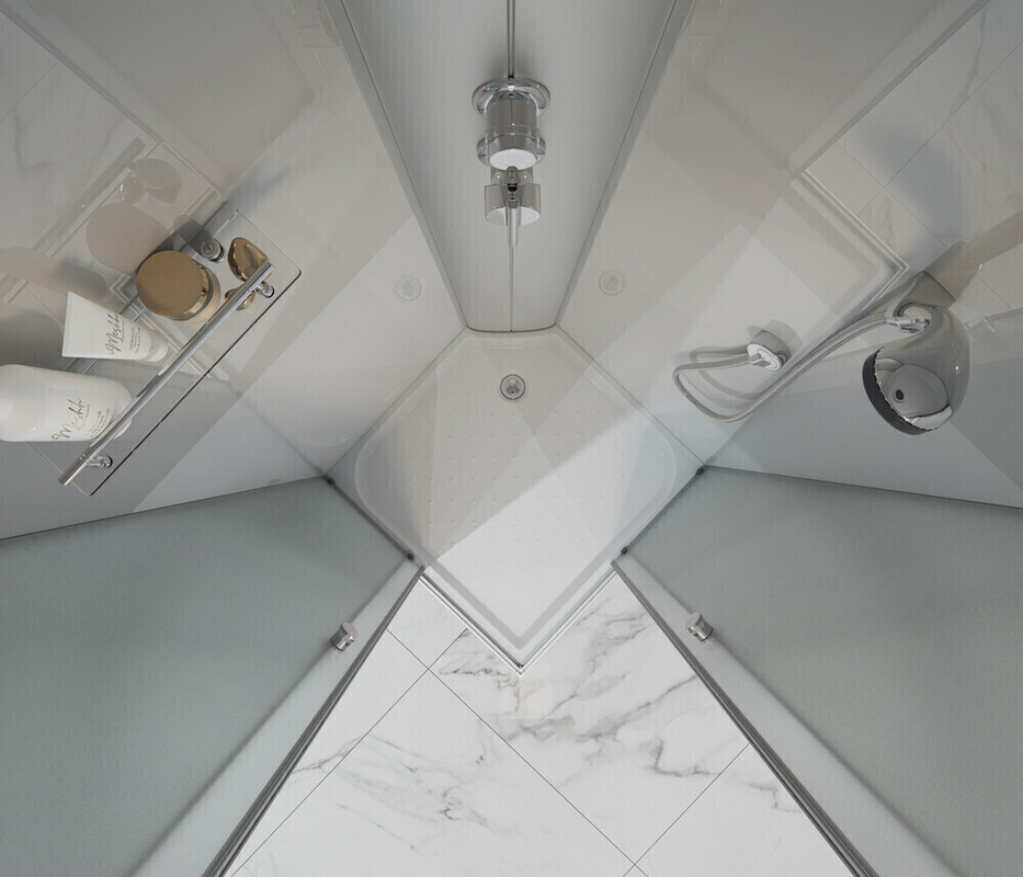 ДК EvaGold квадрат F901WS-Q (90*90, низ.под., рифл. стек., бел. стен., хром матовый проф. 4к.)
