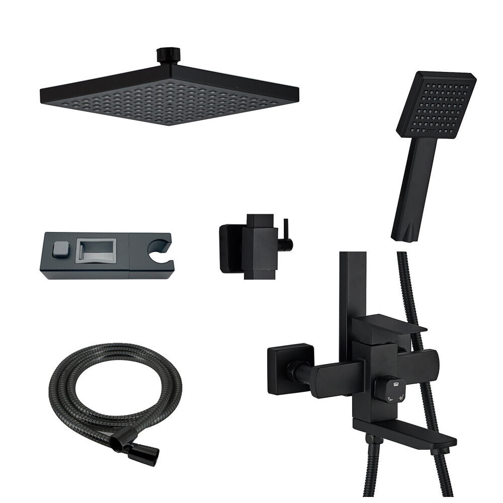 FS02B Душевая стойка со смесителем нержавейка, черный EvaGold