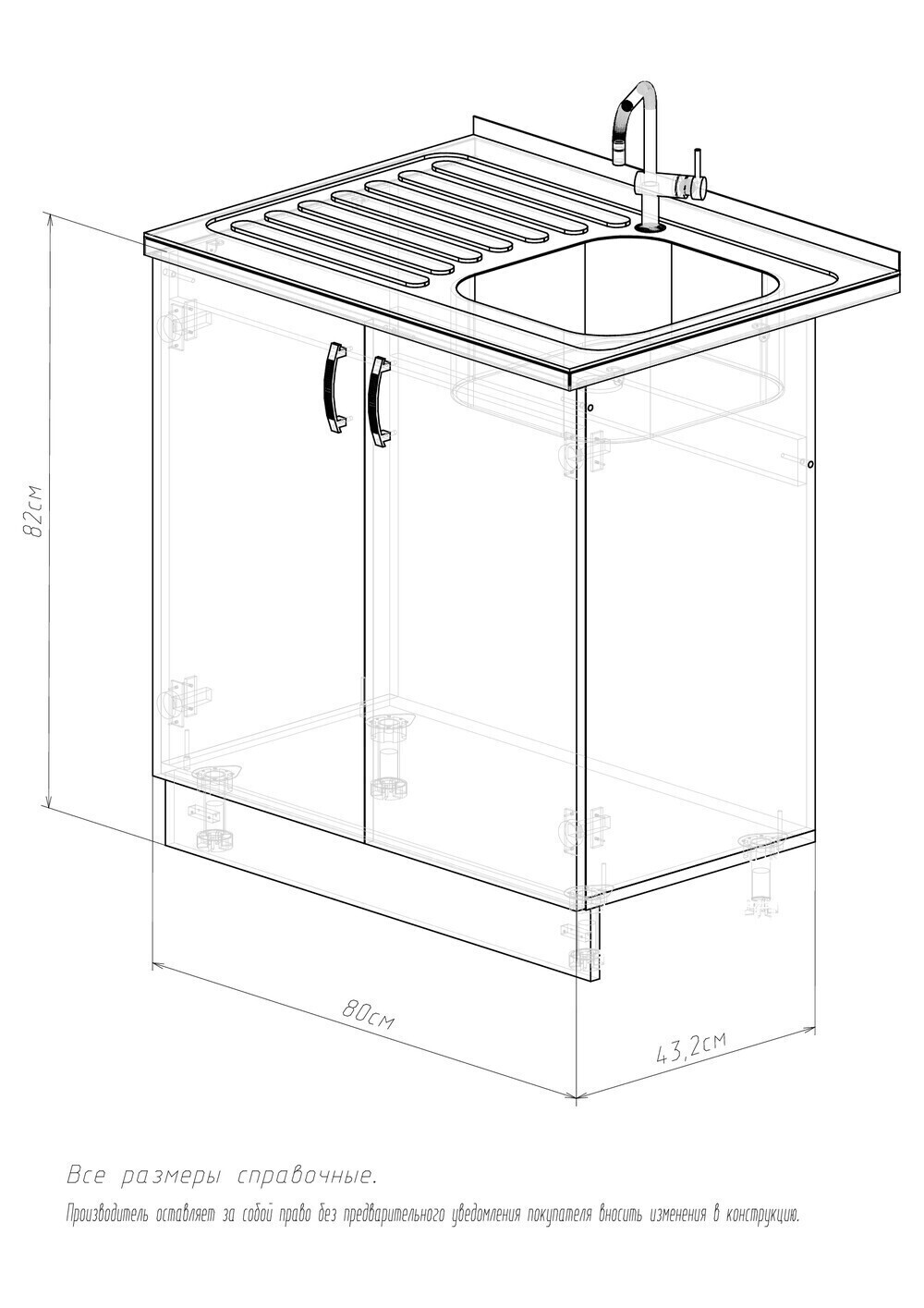 | Комплектация | Кухонный модуль, столешница глубиной 600 мм, торцевая заглушка, цоколь, фурнитура для сборки, инструкция по сборке. |