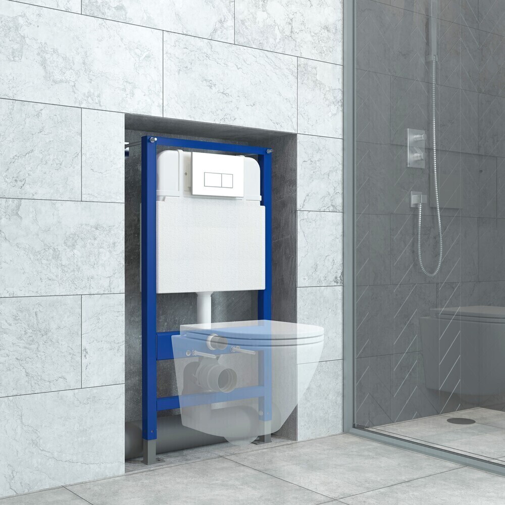 Инсталляция EvaGold 545-10 для подвесного унитаза кнопка пластик прямоугольник белый глянец