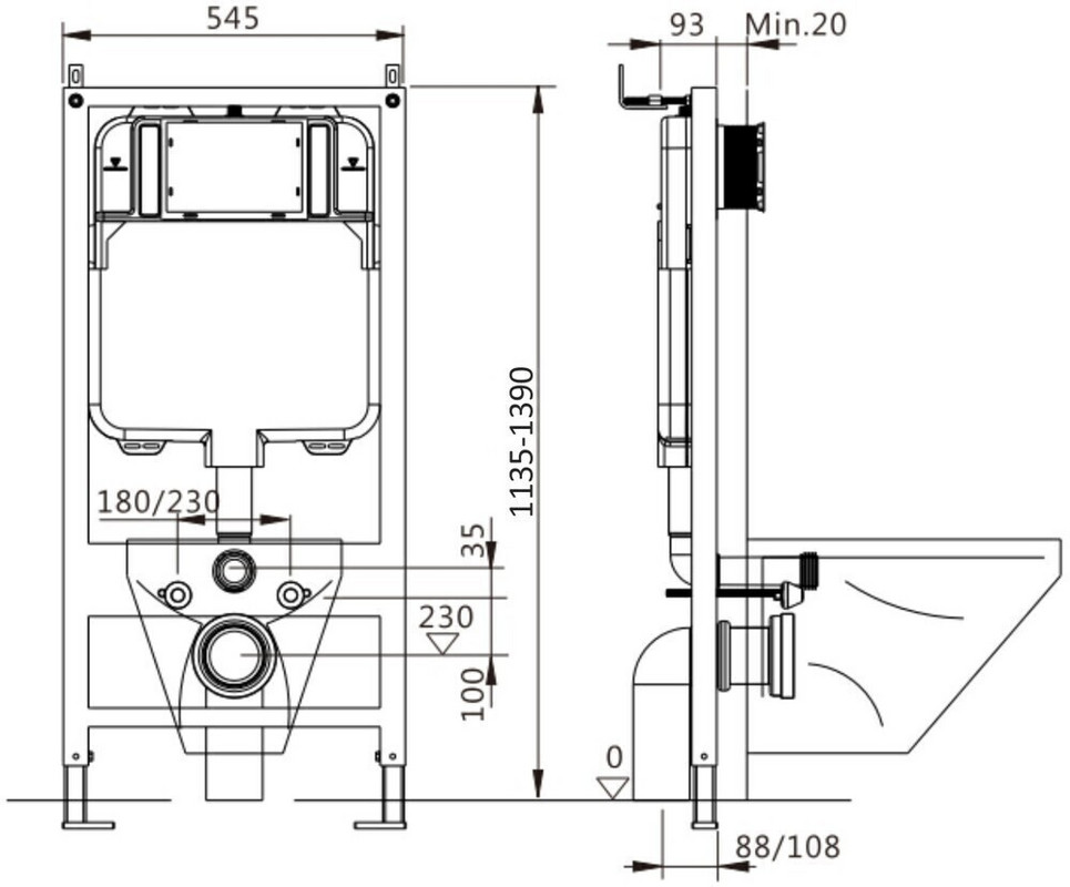 Высота регулируется в диапазоне 1135-1390мм. Инсталляция представляет собой усиленную металлическую раму, которая принимает на себя весь вес сантехнического изделия, а также является надежным упором для унитаза. Благодаря своей продуманной конструкции, вы экономите много пространства за счет спрятанного в раме инсталляции бака для воды, всех креплений и коммуникаций. Полная звуко и шумоизоляция, два режима смыва на 3/6 литров для экономии воды, возможность регулирования мощности потока смыва. Кнопка в комплекте. В механической инсталляции слив осуществляется при помощи рабочих стержней на кнопке смыва и сливного клапана. Подходит для любых подвесных унитазов.