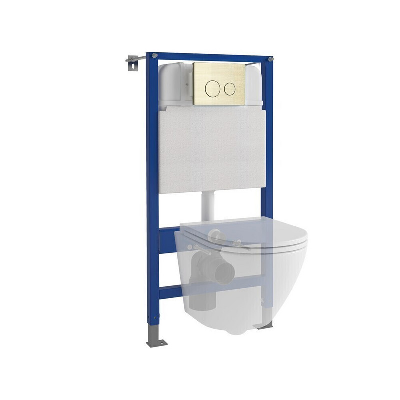 Инсталляция EvaGold 545-25 для подвесного унитаза кнопка нержавейка круг золото