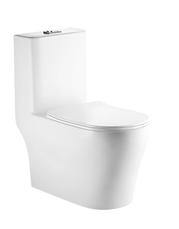 Унитаз-моноблок T1085 безободковый круговой смыв, сиденье тонкое ДП, арматура (с гофрой и подводкой)