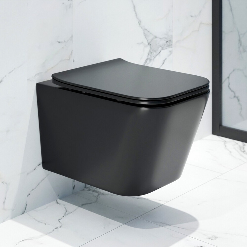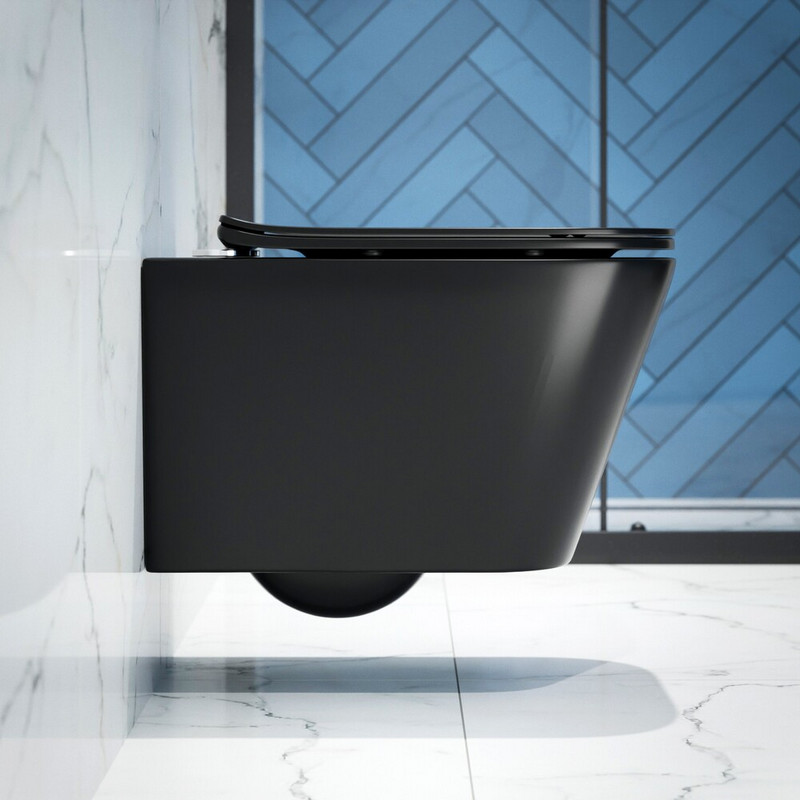 Унитаз подвесной K634BM черный матовый безободковый, сиденье тонкое ДП, крепления
