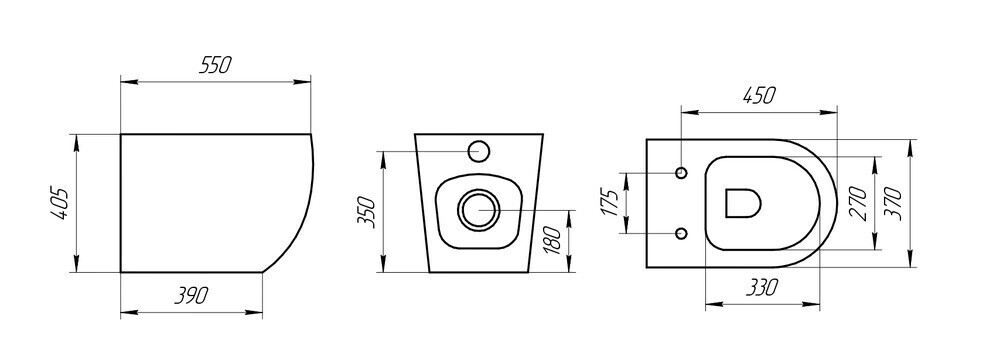 Унитаз приставной P02 безободковый, сиденье тонкое ДП, крепления