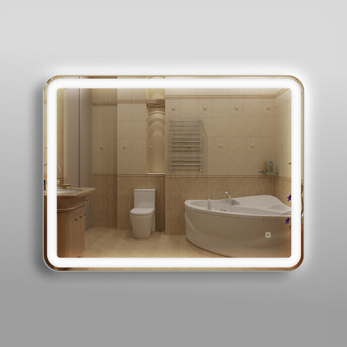 Зеркало 348ско1у с LED подсветкой 9,6 Вт/м. 60х80 см, изготовлено из влагостойкого полотна, с еврокромкой по периметру, с внутренним алюминиевым профилем толщиной 20 мм, с сенсорным выключателем и подогревом 25х50 см. Сетевым проводом с вилкой в комлекте. Универсальное крепление.